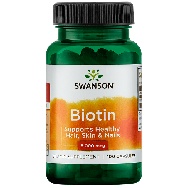 Keep your skin and hair healthy with Biotin, also known as Vitamin B7. Perfect for those with an active lifestyle, Biotin also supports energy metabolism and normal psychological function. Each handy, high-strength capsule from Swanson Health is packed with 5000µg of Biotin.