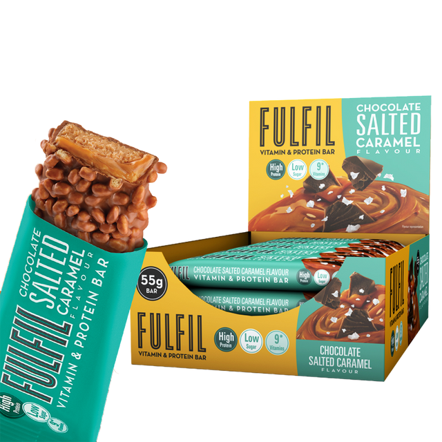 Vous voulez un en-cas protéiné avec des avantages ? Comme le suggère son nom, la barre vitamines et protéines de Fulfil contient neuf vitamines, ainsi que 20 g de protéines de haute qualité pour vous aider à développer et à maintenir votre masse musculaire. Idéal pour un shot de protéines à pied levé ou après l’exercice pour soutenir vos objectifs nutritionnels et d’entraînement, la barre Vitamines et Protéines est également à faible teneur en sucre et riche en fibres.Un ajout savoureux à votre régime riche en protéines