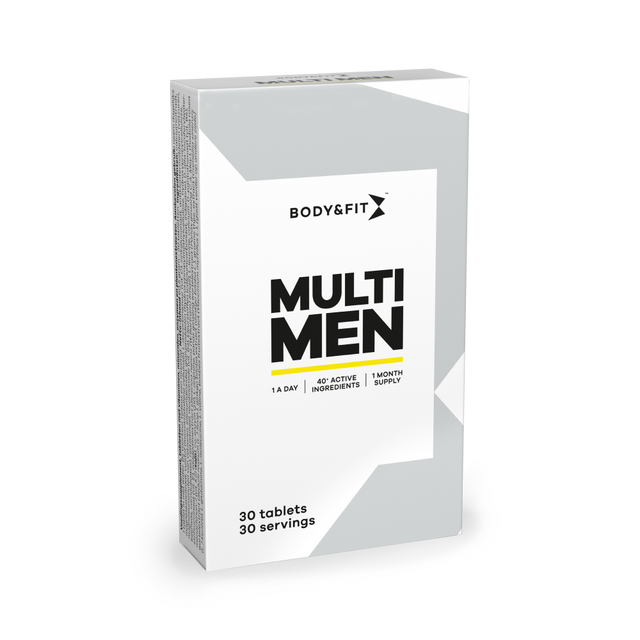 Depuis nos débuts, nous sommes à la pointe de l'innovation afin de proposer des produits de qualité à prix réduit. C'est en repensant sans cesse la formulation de nos produits que nous obtenons des compléments répondant aux attentes des consommateurs les plus exigeants. Multi Men n'échappe pas à la règle, étant un produit très complet développé à partir d'ingrédients tendances. Pour n'en citer que quelques-uns : du ginseng, gingko biloba, rhodiole, arginine ou encore saw palmetto. Multi Men est composé de vitamines, minéraux, enzymes et extraits d'herbes méticuleusement sélectionnés pour leur caractère hautement assimilable. Il est également composé d'un mélange de BCAA et glutamine pour un complément idéal dans le cadre d'un mode de vie actif. 1 comprimé par jour suffit.Plus de 30 ingrédients actifs