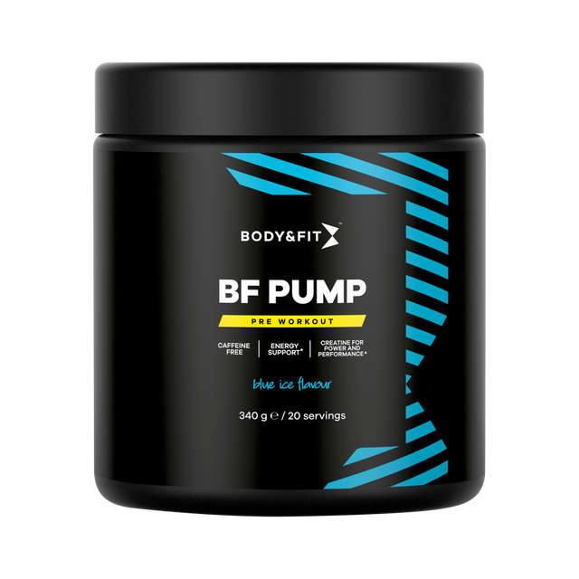 Geef je workouts een boost met onze cafeïnevrije pre-workout, beschikbaar in twee verfrissende smaken: Blue Ice en Tropical Blush. Deze formule is verrijkt met onder andere creatine, wat helpt prestaties te verbeteren en zorgt voor meer kracht bij explosieve krachtsinspanningen*. Daarnaast is BF Pump verrijkt met vitamine B3 en B12, die het energieniveau ondersteunen. En dit allemaal zonder de nadelige effecten van cafeïne. Pump is daarmee ideaal voor een training later op de avond of als je al aan je cafeïne max van de dag zit.