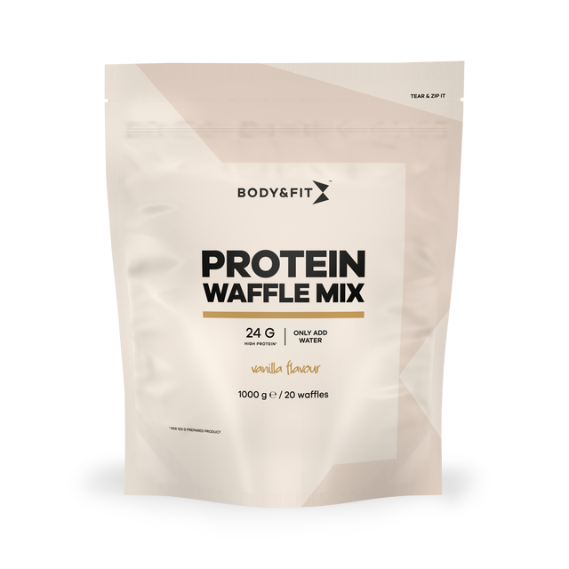 voor 2 middelgrote wafels: verwarm het wafelijzer voor en vet deze in. Mix 2 afgestreken maatscheppen Protein Waffle Mix (100 gram) met 160 ml water tot een glad beslag. Giet het beslag in het wafelijzer en sluit het ijzer. Houd deze gesloten tijdens het bakken. Bak de wafels in ongeveer 2-4 minuten goudbruin. De baktijd kan variëren per wafelijzer.