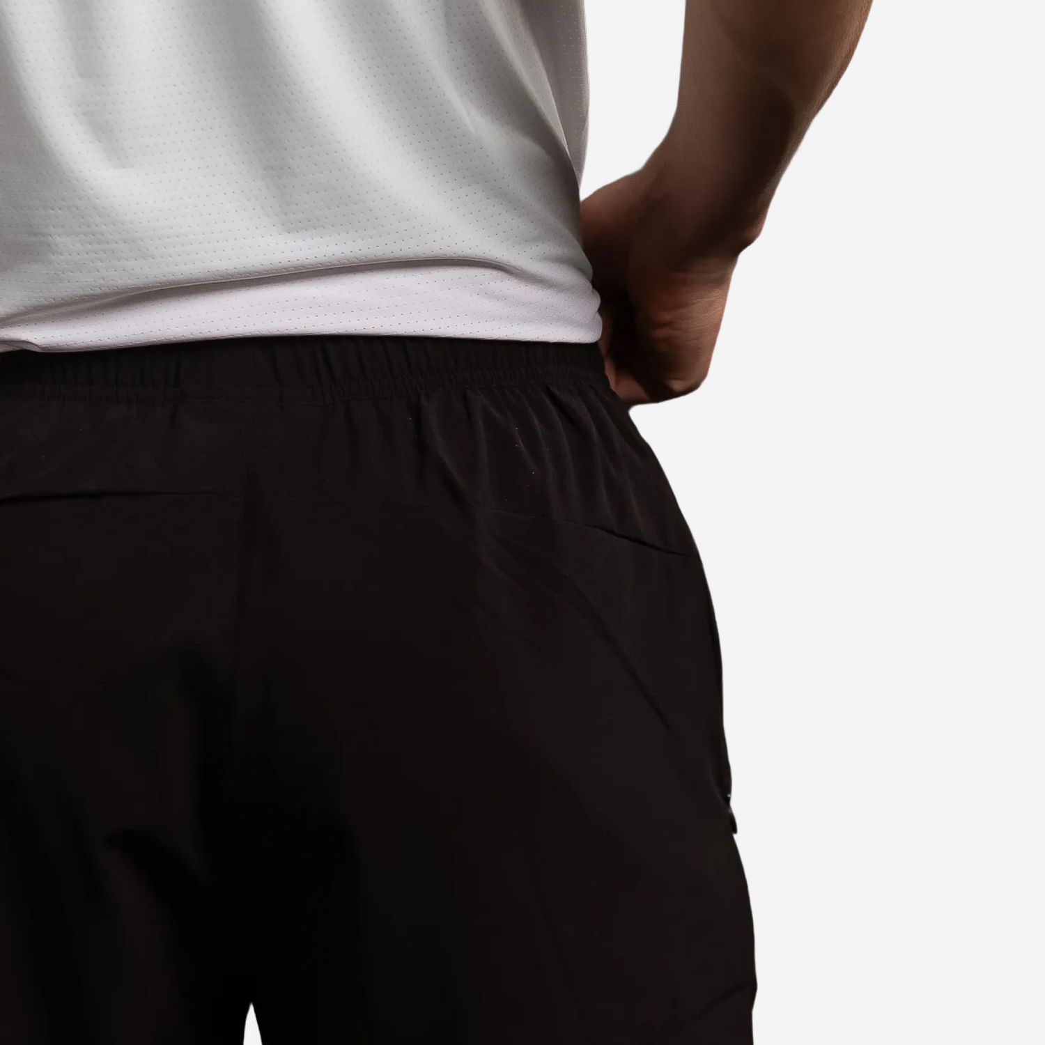 Laser-cut ventilatie aan de achterkant zorgt voor maximale ademing, waarbij de elastische tailleband met trekkoord zorgt voor een stevige, comfortabele fit. Afgewerkt met onzichtbare ritszakken om je essentials op te bergen en contrasterende Body&Fit-logoprint.